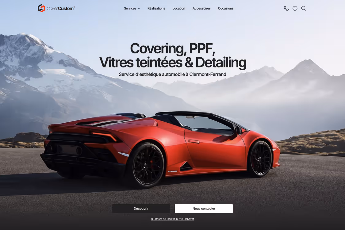 Cover Custom nous a sollicités pour renforcer leur présence en ligne en mettant en avant leurs services spécialisés dans le covering et la protection de peinture XPEL. Ils souhaitaient un site web moderne et fonctionnel qui reflète la qualité de leurs prestations et attire une clientèle passionnée par l'esthétique automobile.